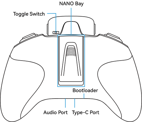 - Pulsante Bootloader: Spegne il trasmettitore radio. Premi contemporaneamente il pulsante Bootloader e il pulsante di accensione. Rilasciando i due pulsanti contemporaneamente si accederà all'interfaccia del Bootloader.
