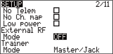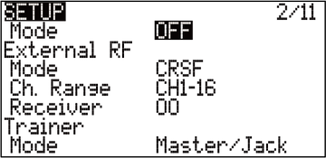 - Binding: fare riferimento al manuale corrispondente in base al modulo TX esterno.
