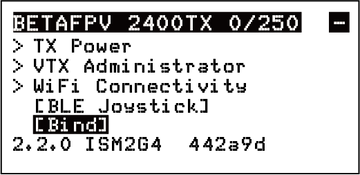 - Binding: accedere all'interfaccia ExpressLRS.lua e selezionare Bind per completare il collegamento.