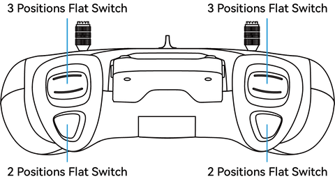 - Interruttori a levetta neri: attiva la funzione di taglio del joystick del telecomando.
